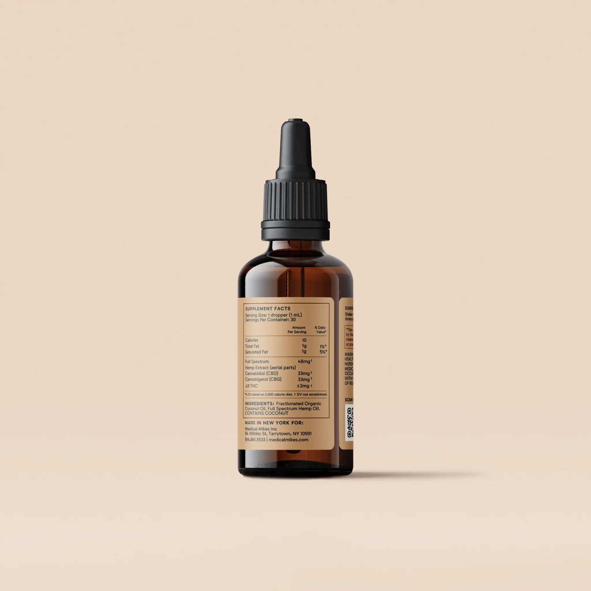 In addition to CBG, Medical Mike’s reserve oil blend contains an equal concentration of CBD along with terpenes, flavonoids, and essential nutrients, in every drop.
